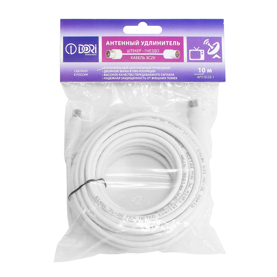 1132-1 Антенный удлинитель DORI 3с2v (белый) L=10 м (штекер-гнездо)