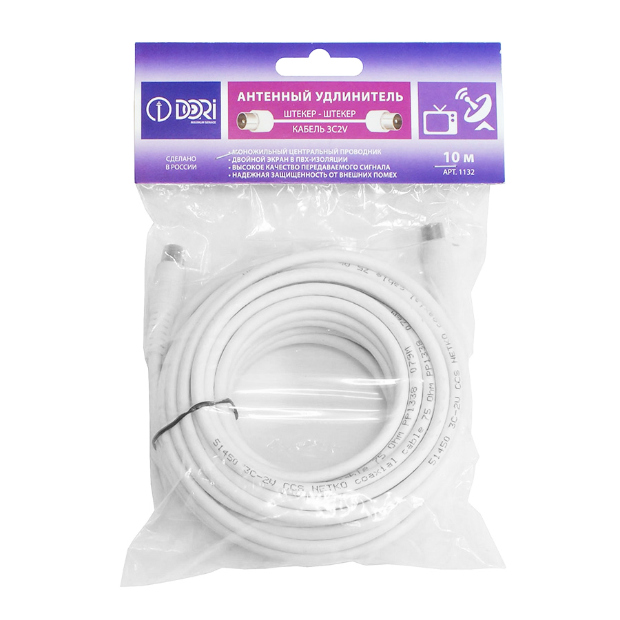 1132 Антенный удлинитель DORI 3с2v (белый) L=10 м (штекер-штекер)