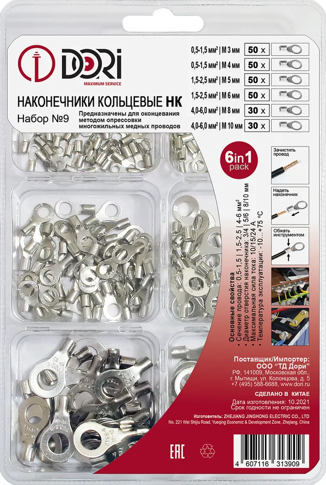 1,5-2,5 мм² | 6 мм | 50 шт | 15 А |