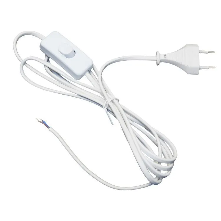 Шнур для бра с переключателем, белый, блистер, длиной 3,5 м предназначен для удобного подключения настенных светильников (бра) к сети 220 В с возможностью включения и выключения с помощью встроенного переключателя. Комплектуется удобной упаковкой в блистере для безопасного хранения и транспортировки.