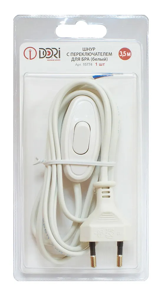 15774 Шнур для бра с переключателем, белый, блистер, 3,5м