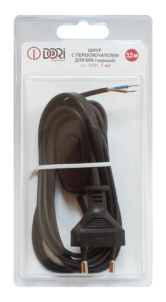 15781 Шнур для бра с переключателем, чёрный, блистер, 3,5м
