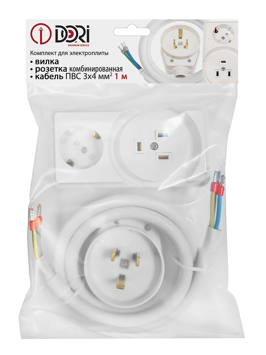 Компактный силовой комплект с двухпозиционным блоком розеток — идеален для подключения электроплиты и духового шкафа при ограниченной длине линии. Полностью готов к монтажу