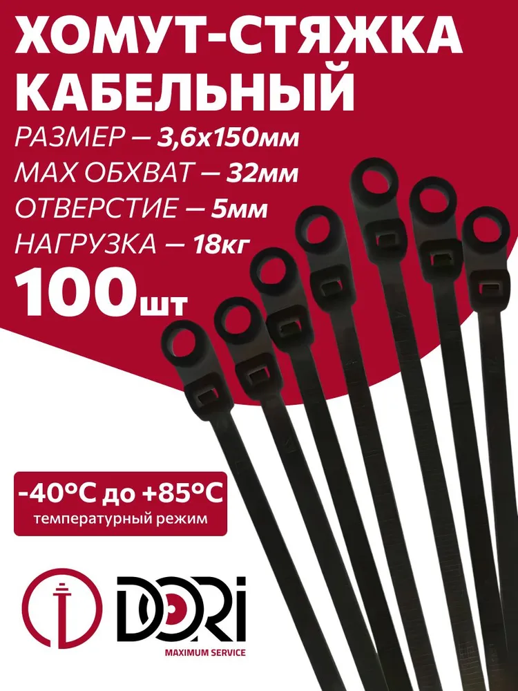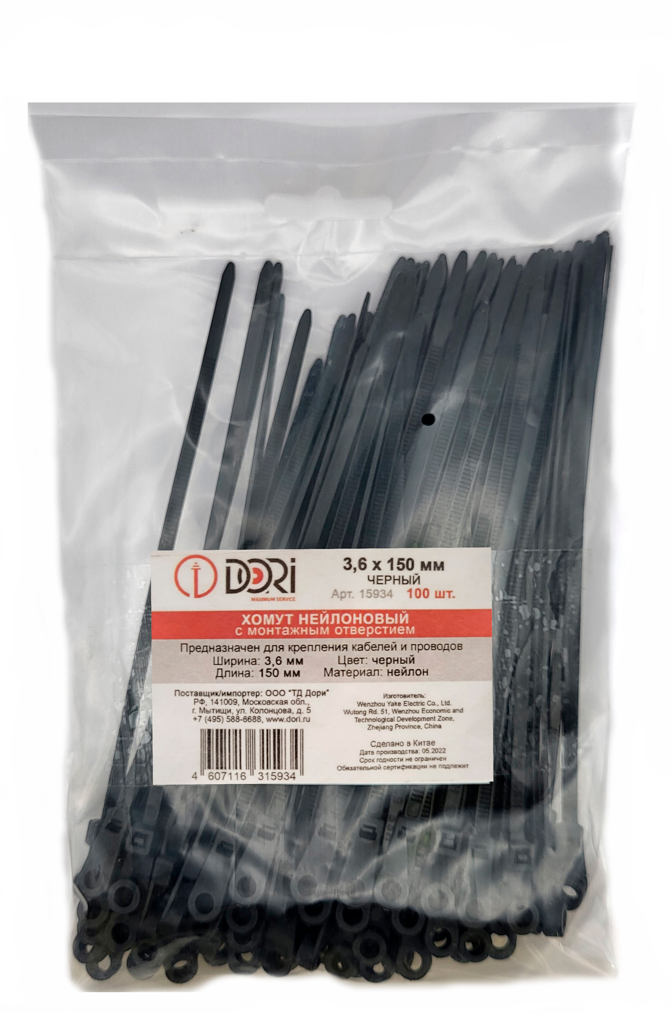 15934 Хомут нейлоновый с монтажным отверстием DORI 3,6*150, черный, 100шт/уп