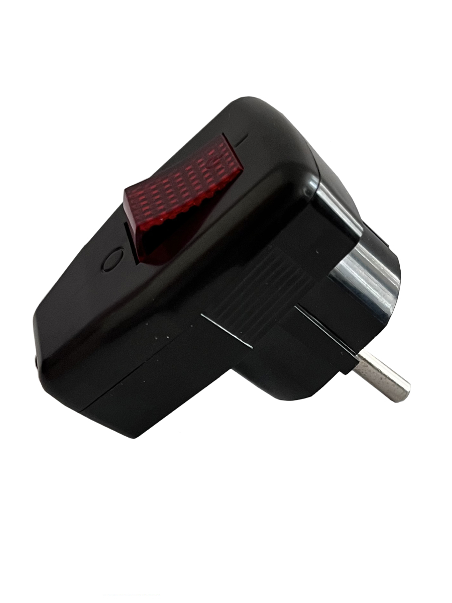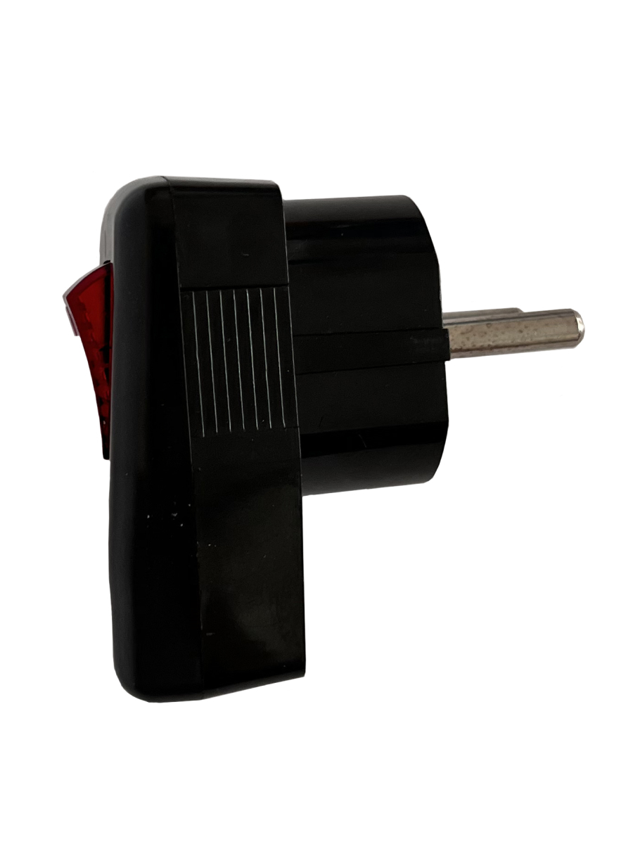 Вилка DORI с выключателем, угловая, с заземлением, чёрная предназначена для безопасного подключения электроприборов к сети 220 В. Угловой корпус позволяет компактно расположить вилку, а встроенный выключатель обеспечивает удобное включение и выключение питания без отключения от розетки.