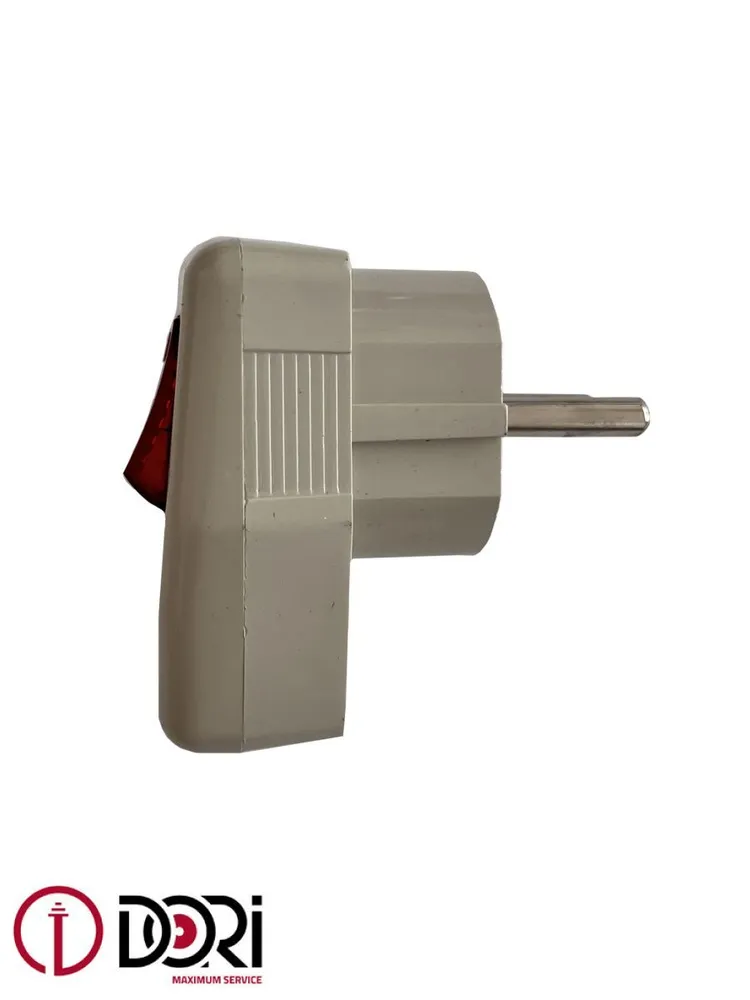 Вилка DORI с выключателем, угловая, с заземлением, серая предназначена для безопасного подключения электроприборов к сети 220 В. Угловой корпус позволяет компактно расположить вилку, а встроенный выключатель обеспечивает удобное включение и выключение питания без отключения от розетки.