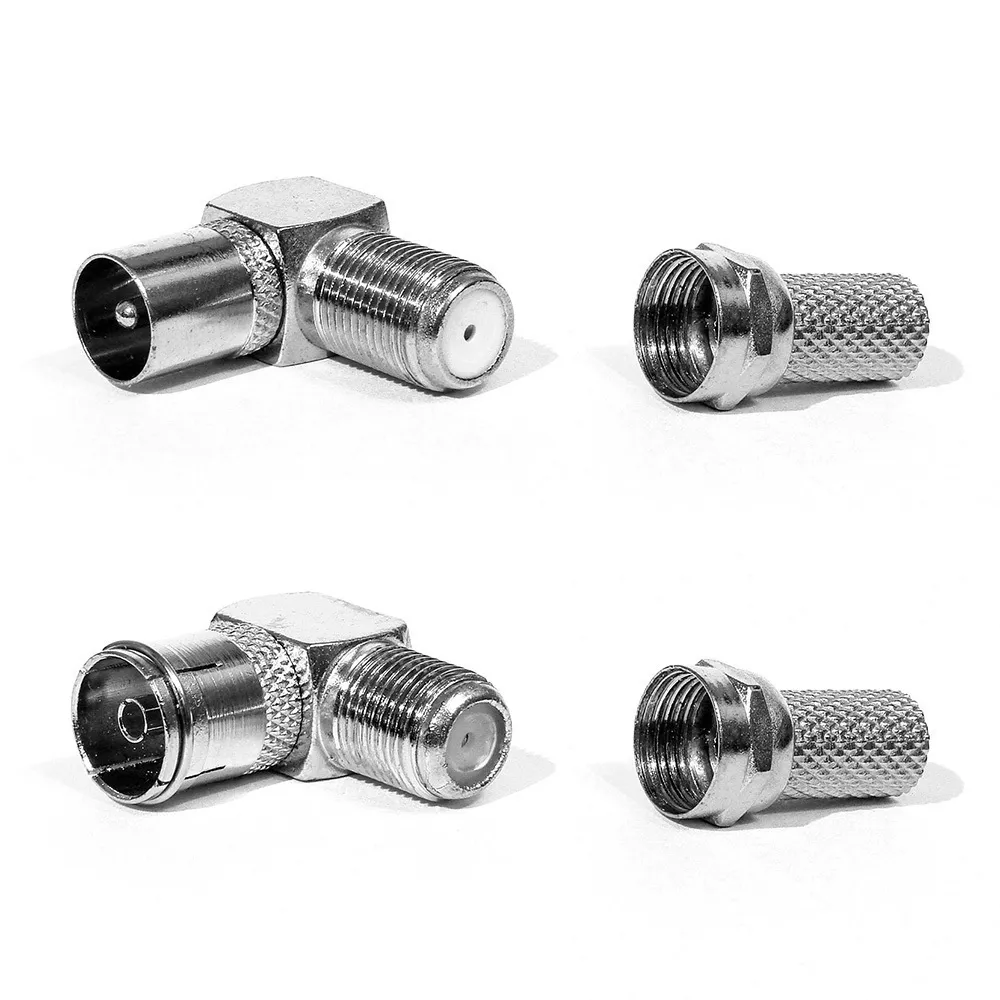16818 Комплект ТВ-разъемов №1 (4шт) - F-гнездо-ТВ-штекер-угловой, переходник F-гнездо-ТВ-гнездо угловой, F-разъем - 2 шт.