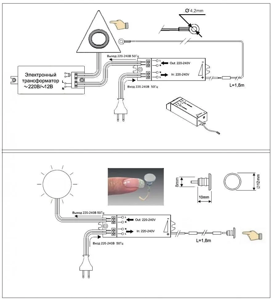 17129 Выключатель сенсорный DKs-1,(HZK 201)220В, max 500Вт, провод L=1,5м кРФ