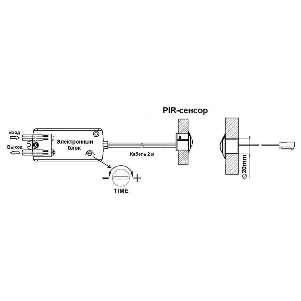 17594 Выключатель с датчиком движения PIR250, 220V, 250W, кабель 2м, расстояние срабатывания до 2,5м, угол 120°