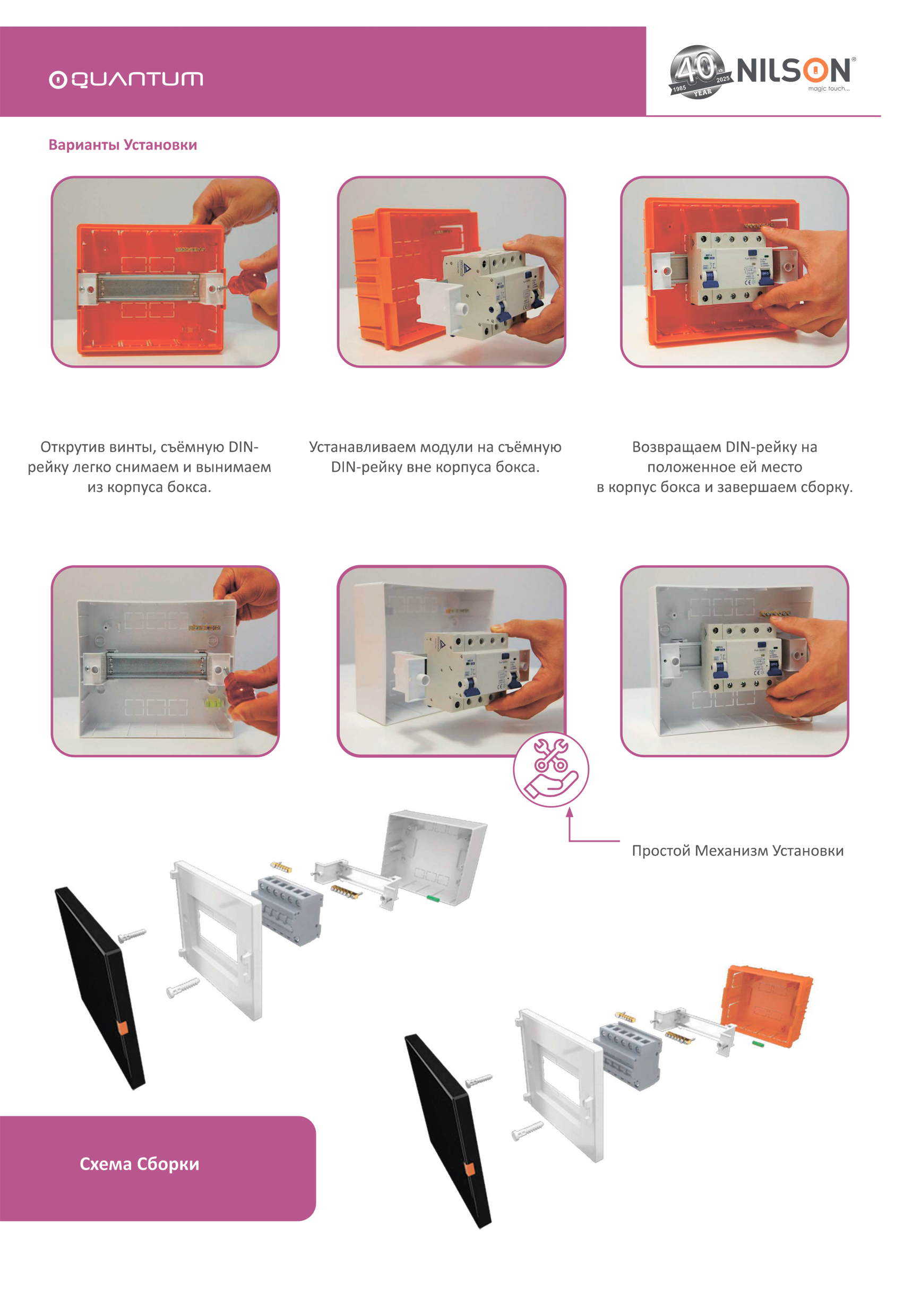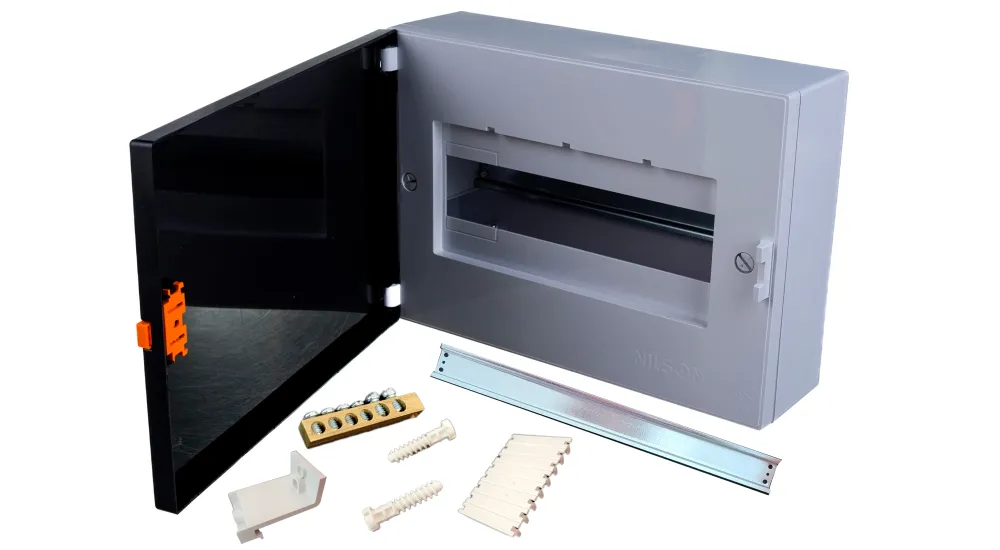 Щит оснащен съемной DIN-рейкой из гальванизированной стали, которая упрощает установку автоматов и других электрических компонентов. Внутри предусмотрены подвижные заглушки для комфортного подключения проводов, а также клеммы для фиксации проводников. Крышка защищает содержимое от пыли и механических повреждений.