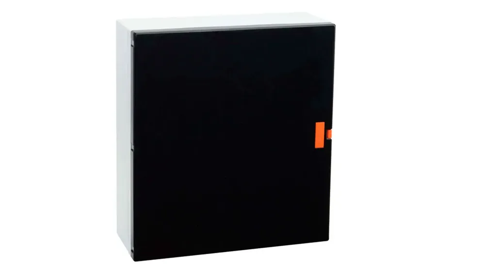Электрощиток обладает стильным дизайном с черной дверцей и аккуратной белой рамкой корпуса, вписывающимися в современный интерьер. Такой многофункциональный бокс станет не только практичным решением для управления электроприборами, но и эстетически привлекательным элементом системы электроснабжения.