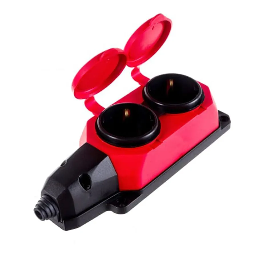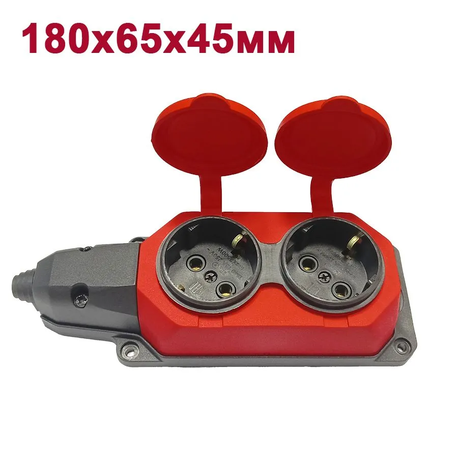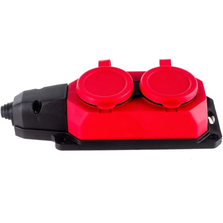 - Колодка 2-местная каучуковая с заземлением 16А IP44, красная — 1 шт.