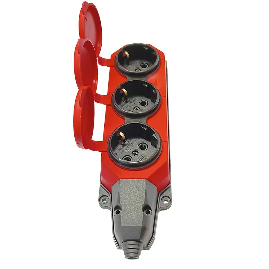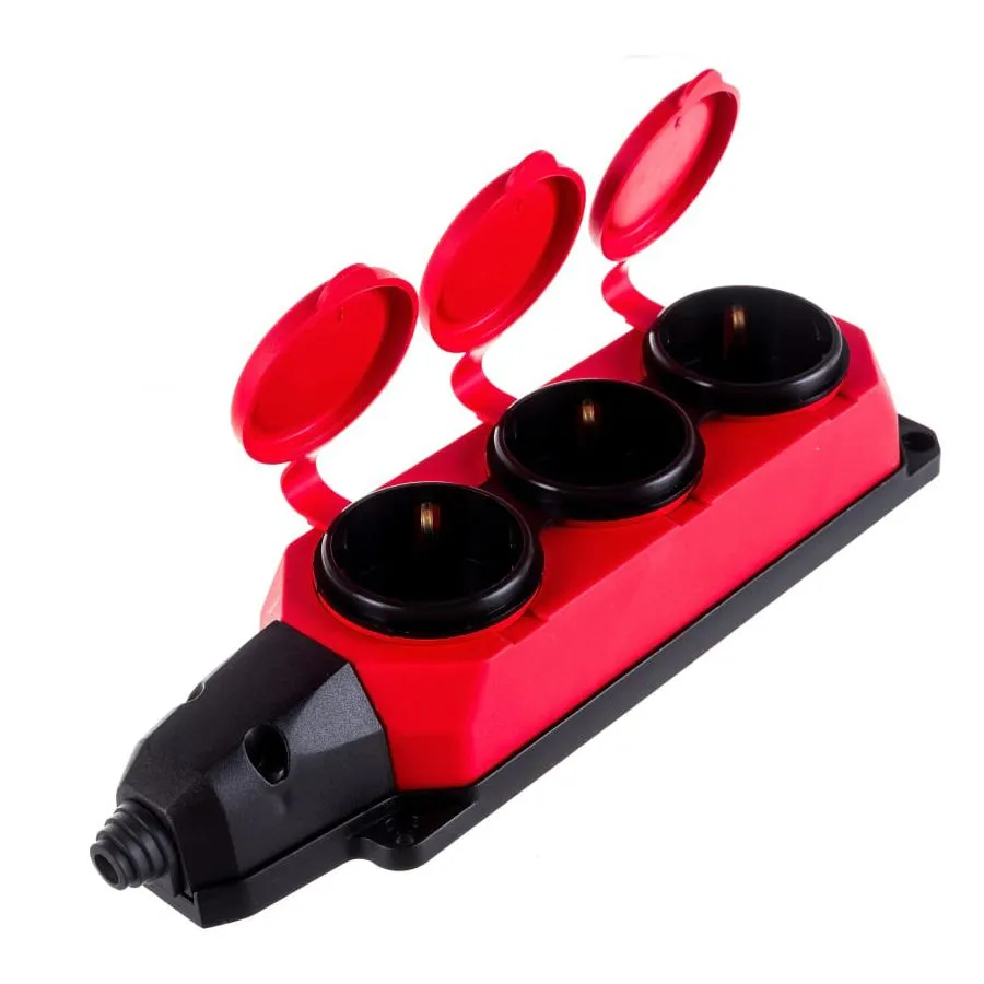 - Колодка 3-местная каучуковая с заземлением 16А IP44, красная — 1 шт.
