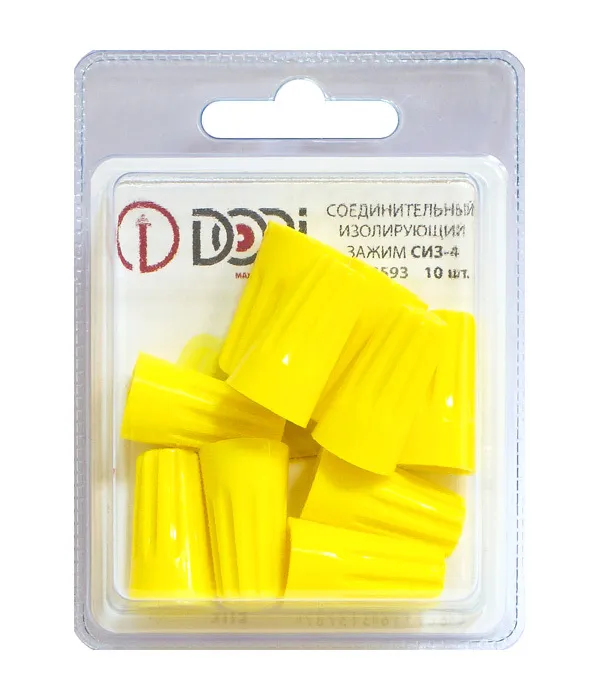 Соединительный изолирующий зажим СИЗ-4 — это удобное и надежное решение для безопасного соединения и изоляции скрутки медных проводов сечением от 1,5 до 9,5 мм². Конструкция зажима позволяет быстро организовать надежный электрический контакт без использования специального инструмента. Прочный корпус из полипропилена полностью изолирует скрутку, обеспечивая защиту от пыли, случайных прикосновений, а также от механических повреждений и перегрева. Благодаря удобству монтажа и долговечности, зажим идеально подходит для электромонтажных работ в бытовых, осветительных и силовых цепях. Упаковка из 10 штук в блистере удобна для хранения и транспортировки.