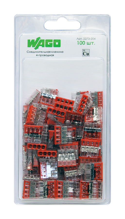Клемма соединительная WAGO 2273-204 (4 проводника, 0.5-2.5 мм²) – 100 шт. в блистере