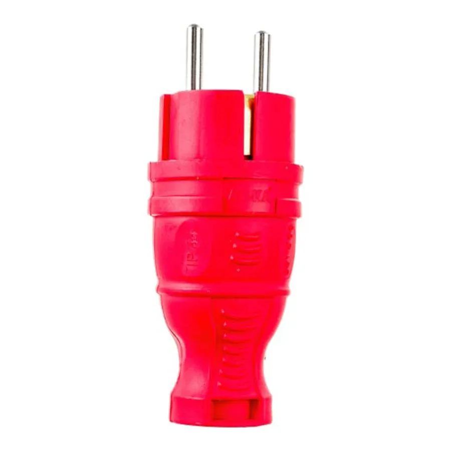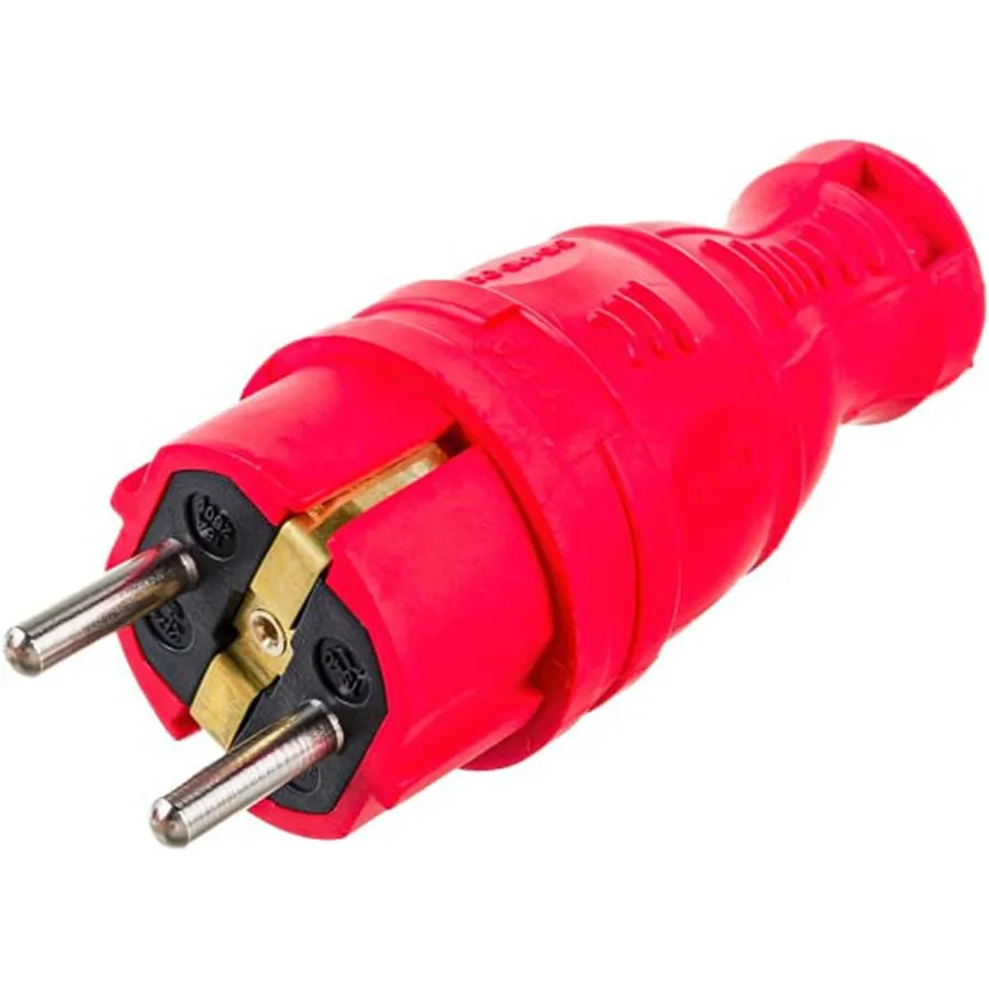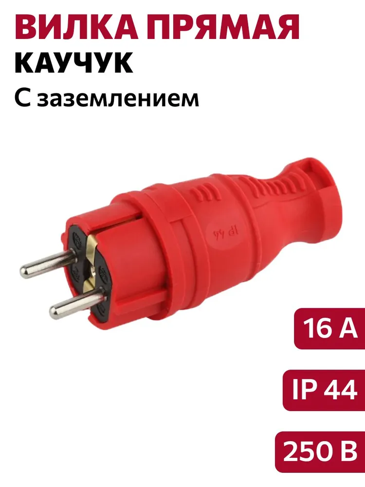 - Вилка прямая каучуковая с заземлением 16А/250В IP44, красная — 1 шт.