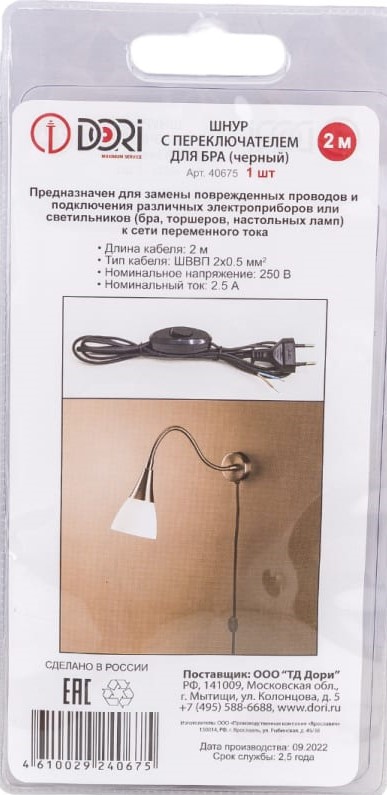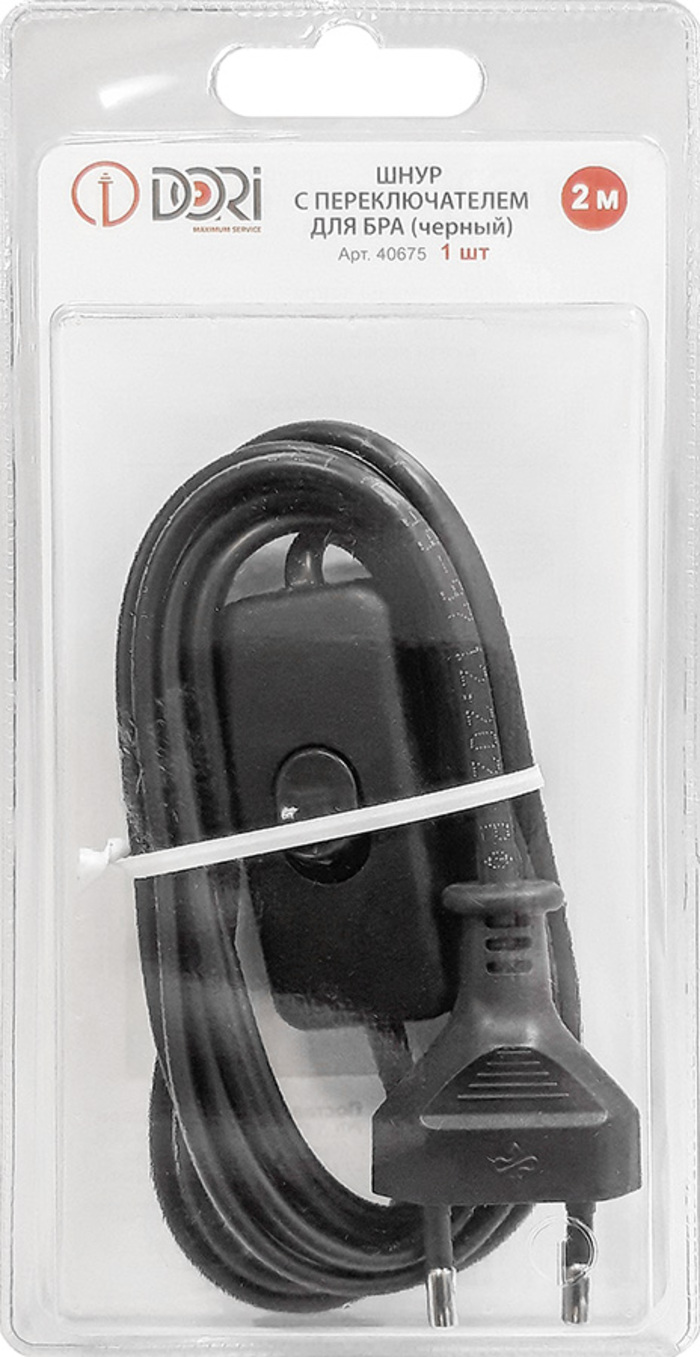 40675 Шнур для бра с переключателем, чёрный, блистер, 2м