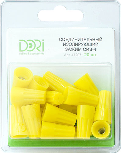 Соединительный изолирующий зажим СИЗ-4 — это удобное и надежное решение для безопасного соединения и изоляции скрутки медных проводов сечением от 1,5 до 9,5 мм². Конструкция зажима позволяет быстро организовать надежный электрический контакт без использования специального инструмента. Прочный корпус из полипропилена полностью изолирует скрутку, обеспечивая защиту от пыли, случайных прикосновений, а также от механических повреждений и перегрева. Благодаря удобству монтажа и долговечности, зажим идеально подходит для электромонтажных работ в бытовых, осветительных и силовых цепях. Упаковка из 20 штук в блистере удобна для хранения и транспортировки.