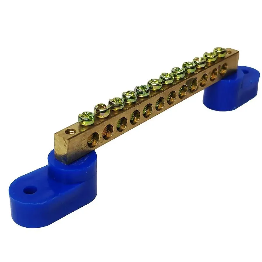 Нулевая шина на 2-х угловых изоляторах (12 отверстий) (1 шт.) предназначена для распределения и подключения нулевых (N) проводников в электрических щитках и распределительных устройствах. Конструкция на двух угловых изоляторах обеспечивает устойчивое крепление, надёжную изоляцию и удобство монтажа.