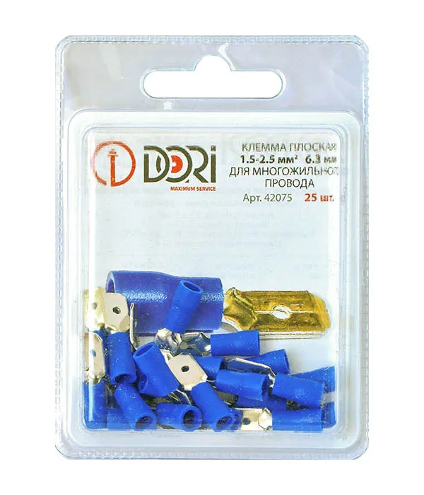 42075 Разъём плоский изолированный штекер 6,3 мм 1,5-2,5 мм2 РПИп (25 шт)