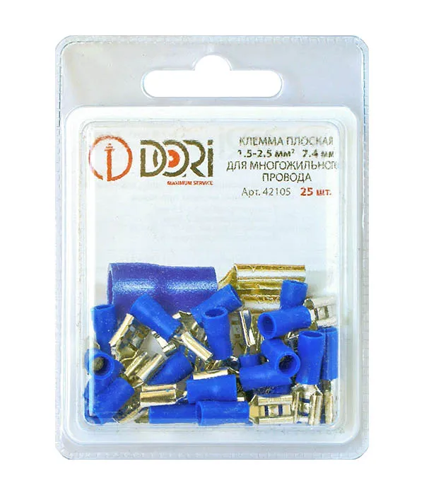 Разъём плоский изолированный гнездо 7,4 мм 1,5–2,5 мм² РПИм (25 шт.) предназначен для быстрого и надёжного соединения проводов среднего сечения в электрических цепях. Обеспечивает стабильный контакт и безопасную изоляцию при эксплуатации.