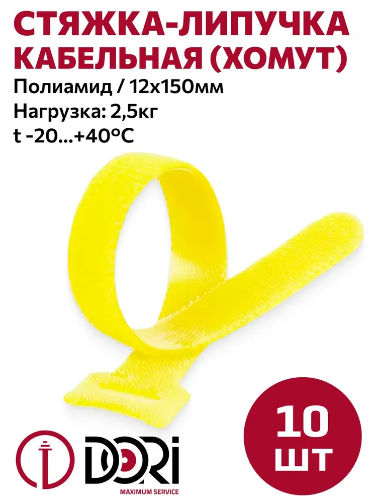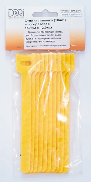 42204 Стяжка-липучка DORI многоразовая 150х12мм 10 шт желтая