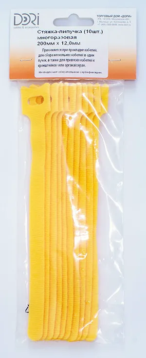 42235 Стяжка-липучка DORI многоразовая 200х12мм 10 шт желтая