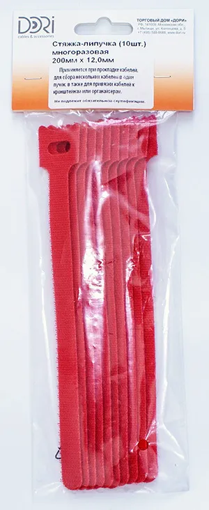 42365 Стяжка-липучка DORI многоразовая 150х12мм 10 шт красная