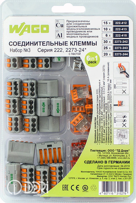 42556 Набор клемм WAGO №3 (серия 222, 2273-24*)