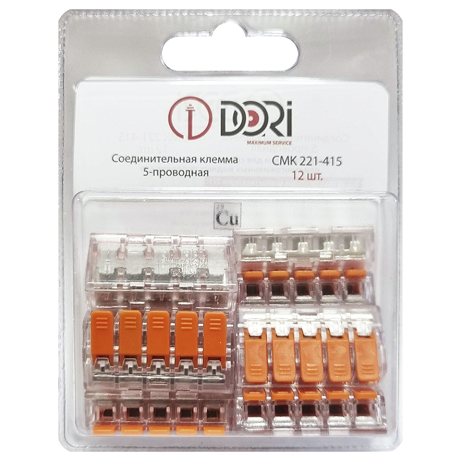 Соединительная клемма Dori (СМК221-415) 5-проводная прозрачная, 12 шт.