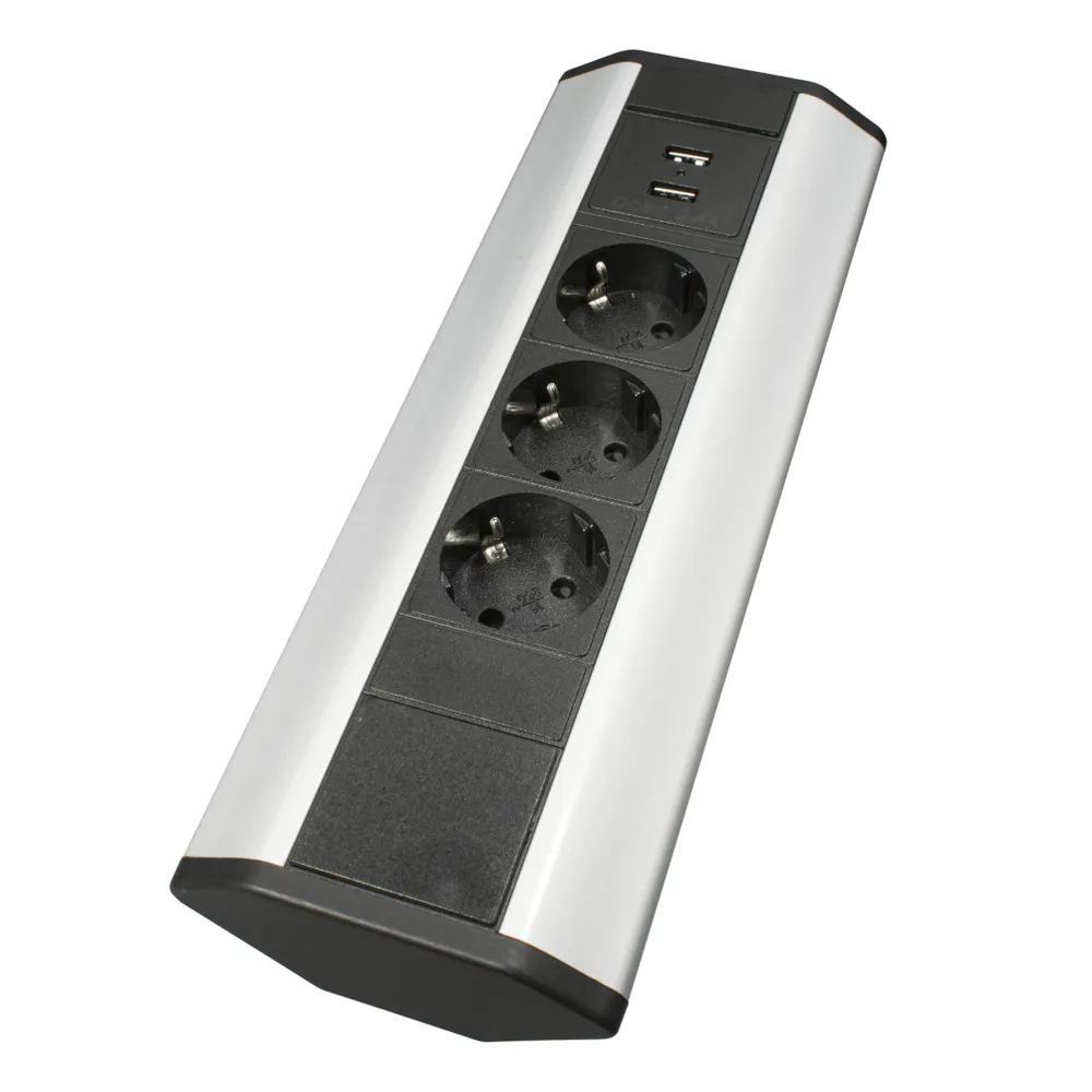 43041 Блок розеток угловой TRINGLE-U, 3EURO+2USB, серебристый NEW