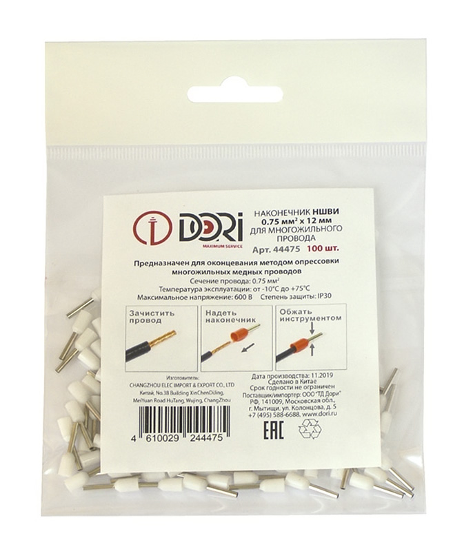 44475 Наконечник штыревой НШВИ 0,75-12 мм (100 шт)