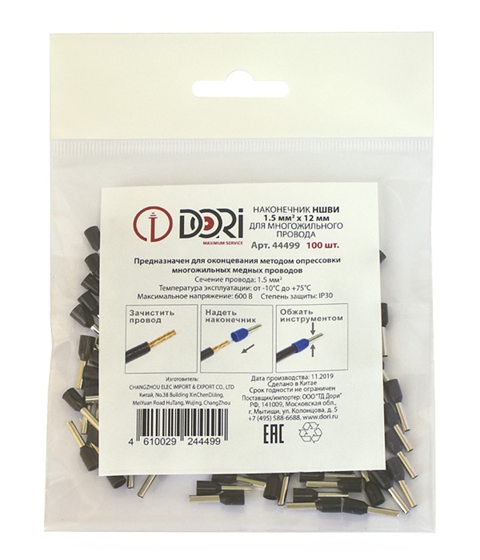44499 Наконечник штыревой НШВИ 1,5-12 мм (100 шт)