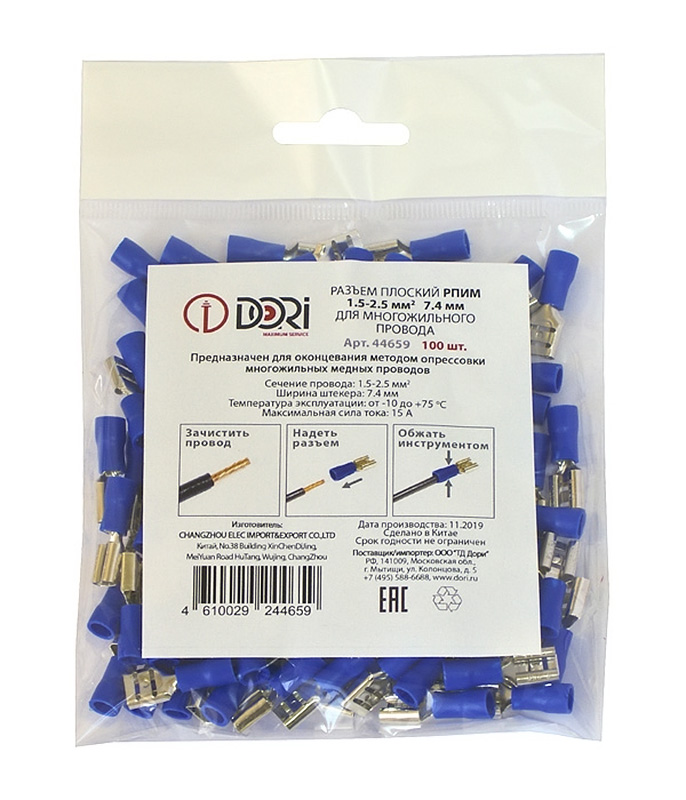 44659 Разъём плоский изолированный гнездо РПИм 2,0-5-0,8 мм2 (100 шт)
