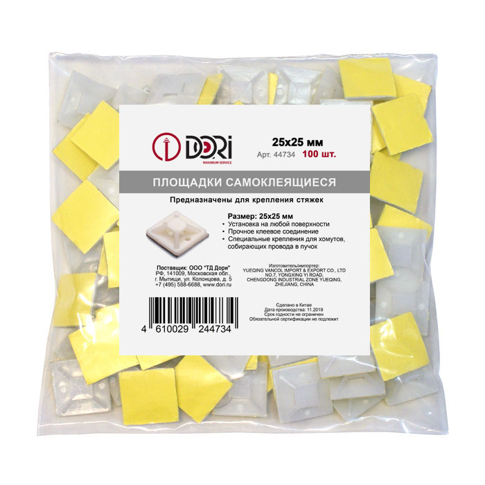 44734 Площадка для крепления стяжек самоклеящаяся 25х25 мм белая (100 шт)