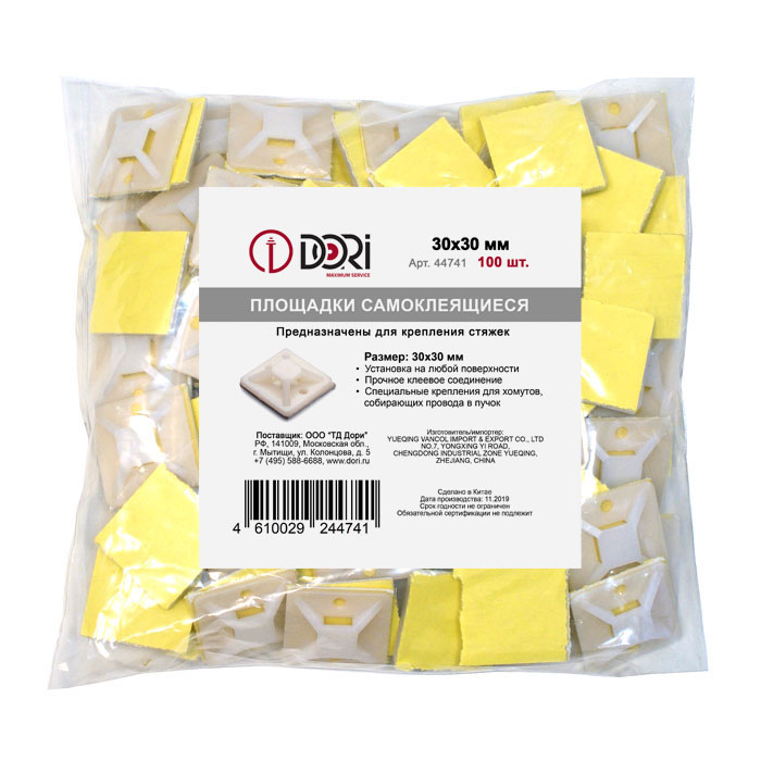 44741 Площадка для крепления стяжек самоклеящаяся 30х30 мм белая (100 шт)