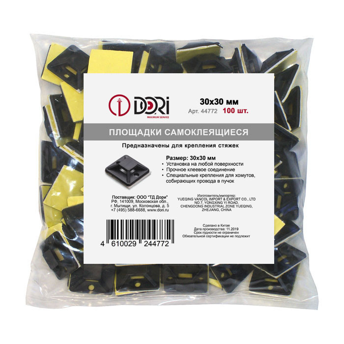44772 Площадка для крепления стяжек самоклеящаяся 30х30 мм черная (100 шт)