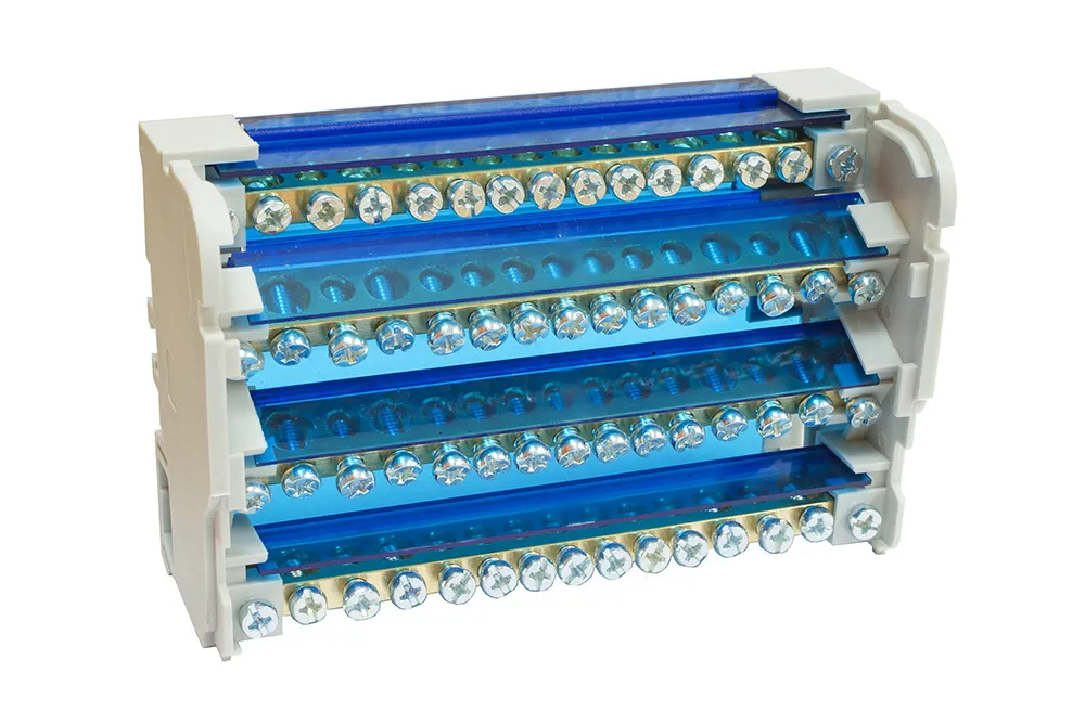 Нулевая шина на DIN-рейку в корпусе (4 шины по 15 отверстий) предназначена для безопасного и удобного распределения нулевых (N) и заземляющих (PE) проводников в электрических щитках. Изделие выполнено в прочном изолирующем корпусе, который обеспечивает дополнительную защиту от случайного контакта и облегчает монтаж на стандартную DIN-рейку 35 мм.