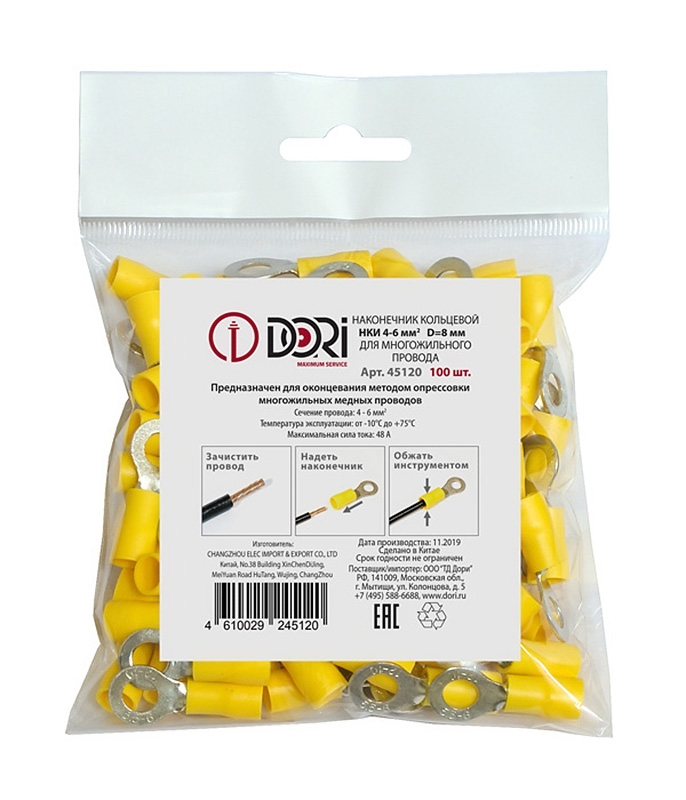 45120 Наконечник кольцевой НКИ 4,0-6,0 мм2 8 мм (100 шт)