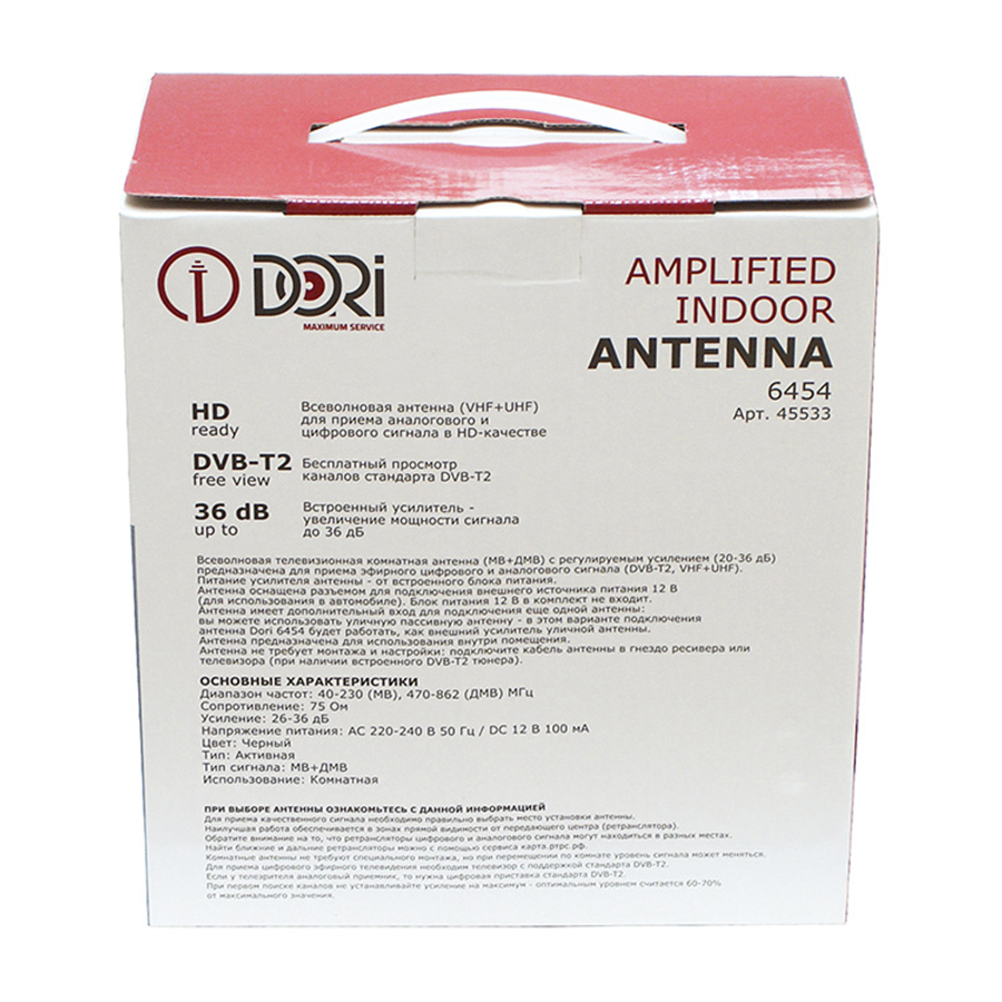 45533 TV Антенна комнатная с усилителем Dori 6454 (Активная 36дб)