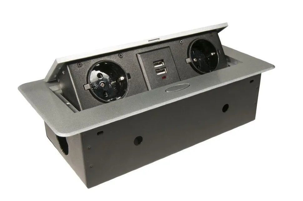 45694 Блок розеток выдвижной горизонтальный, серебристый