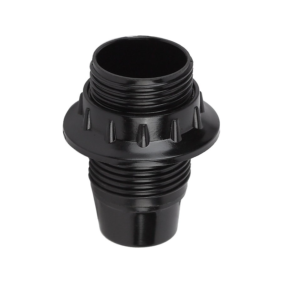 Надежный черный карболитовый патрон с цоколем Е14, оснащенный фиксирующим кольцом. Изготовлен из термостойкого карболита с латунными контактами для долговечной работы.