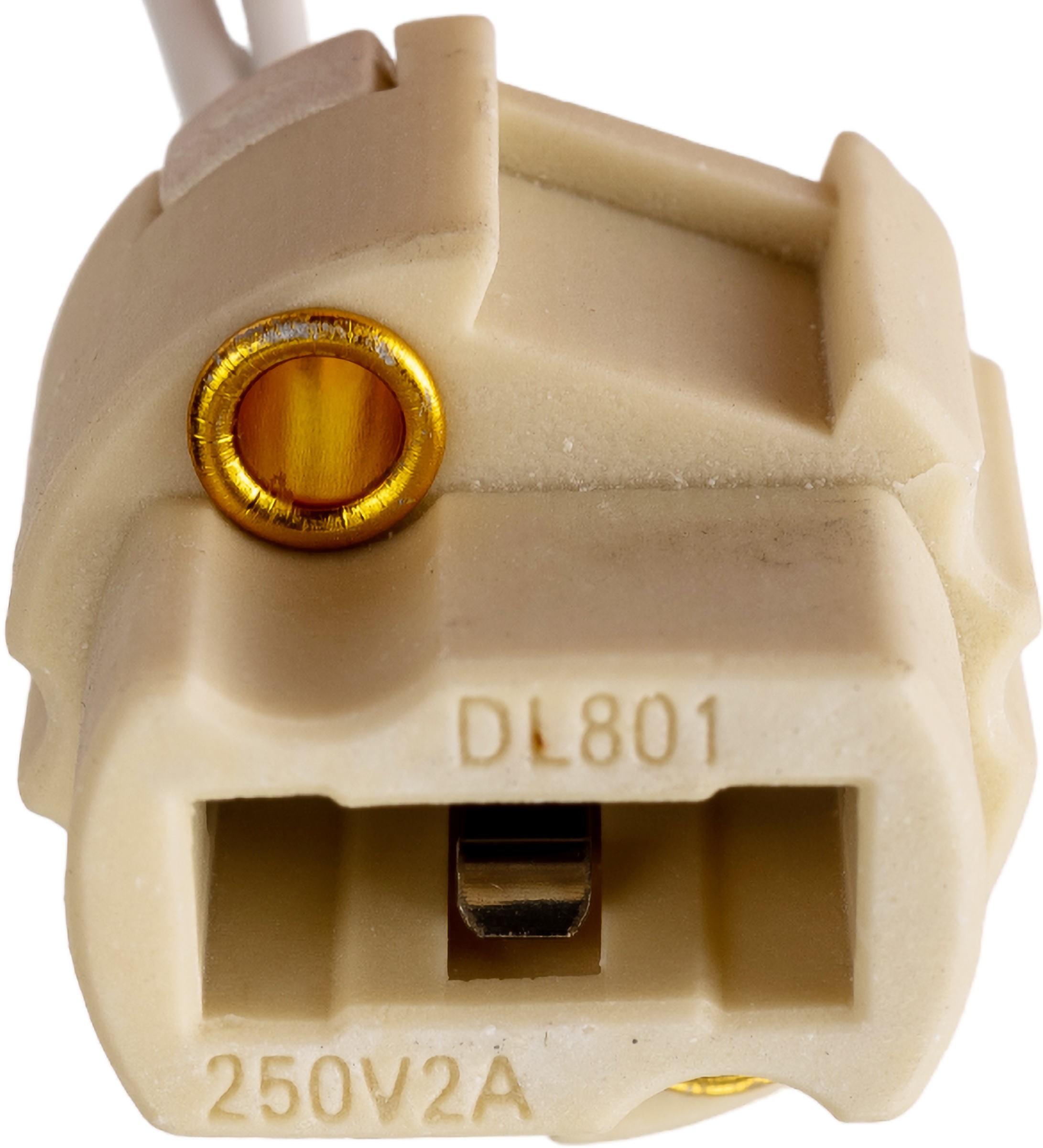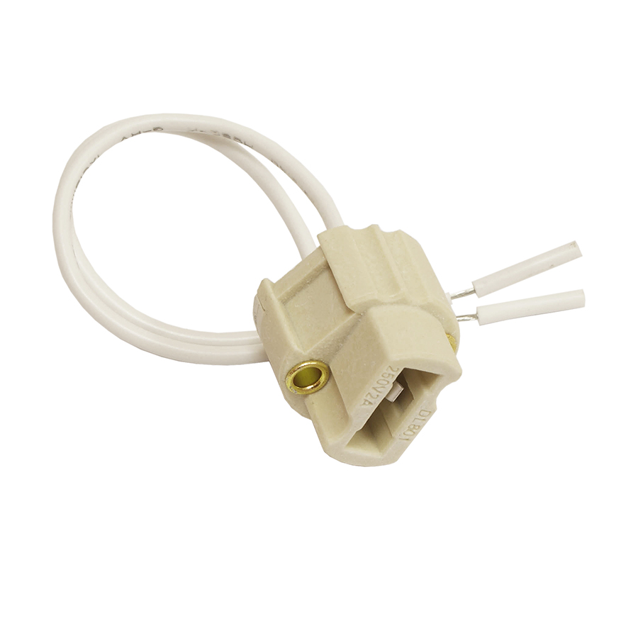 Керамический патрон с цоколем G9 и проводом длиной 10см, предназначенный для подключения галогенных и светодиодных ламп. Номинальный ток 2А, рабочее напряжение до 250В.