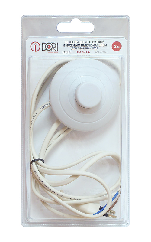 Шнур для торшера с ножным выключателем, белый, 2 м, блистер предназначен для удобного подключения торшеров к сети 220 В с возможностью включения и выключения светильника ногой. Комплектуется удобной упаковкой в блистере для безопасного хранения и транспортировки.