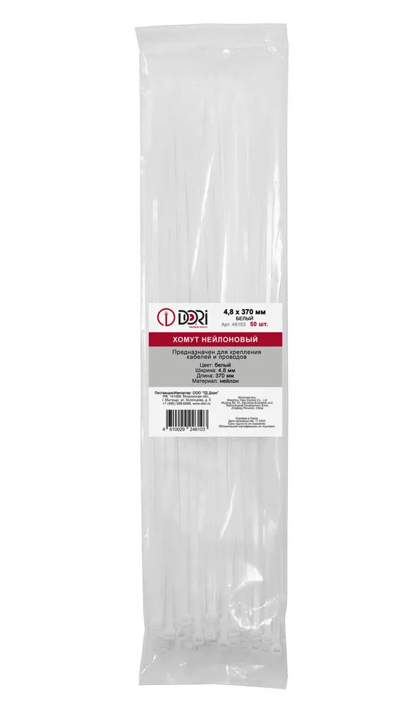 46103 Хомут нейлоновый 4,8х370 мм 50 шт, белый