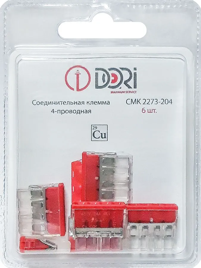 Строительно-монтажная клемма Dori (СМК2273-204) 4-проводная, 6 шт.