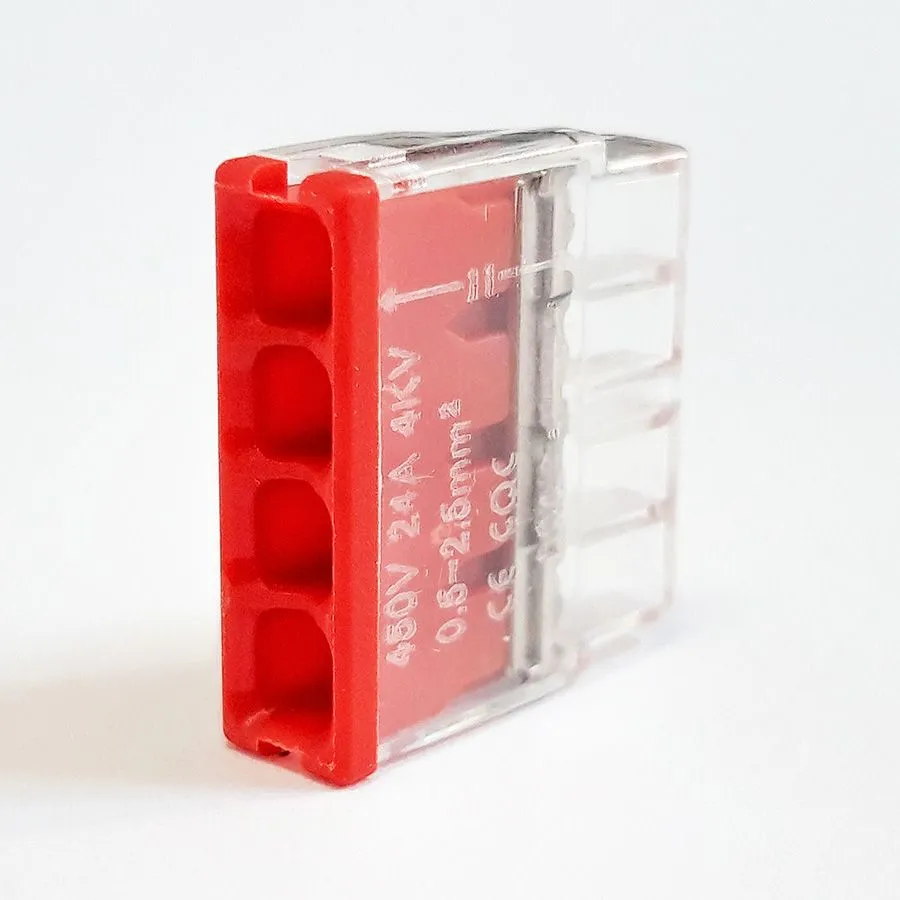 Профессиональная клемма для надежного соединения четырех проводников. Прозрачный корпус позволяет визуально контролировать качество соединения.