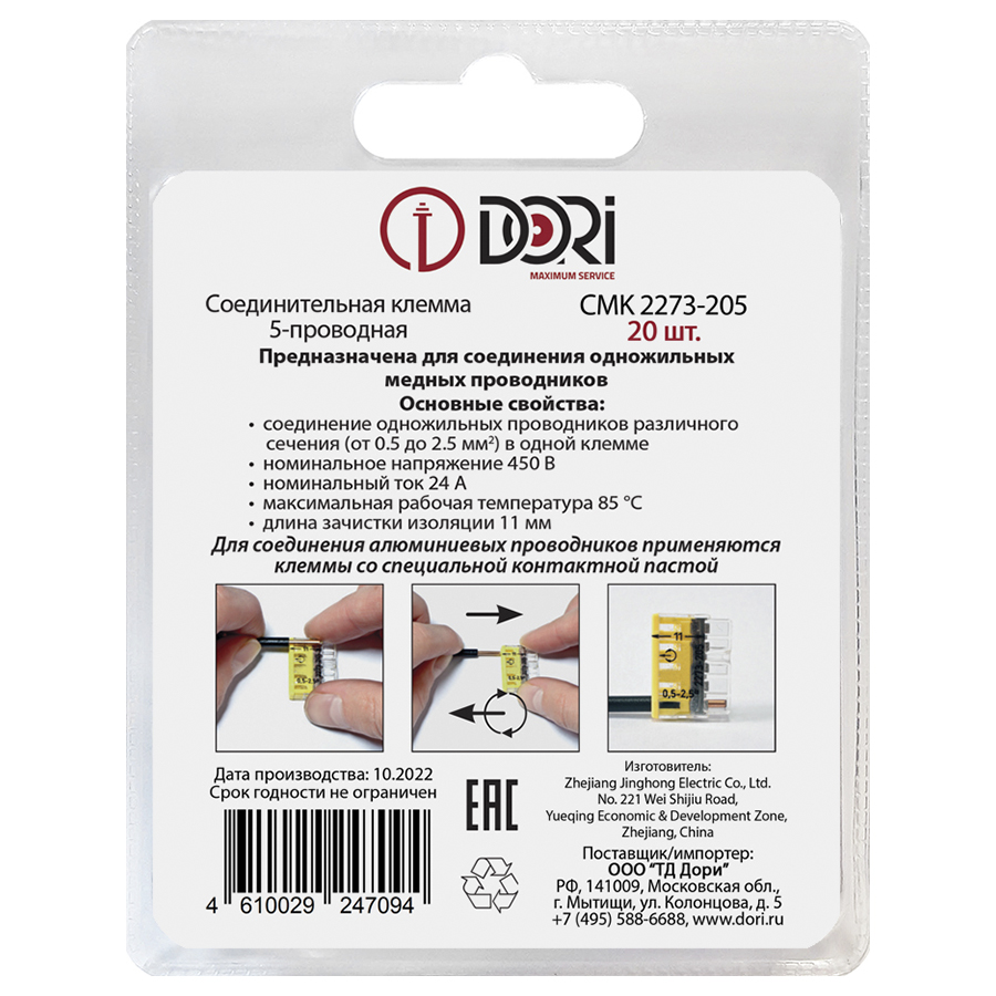 47094 Строительно-монтажная клемма Dori (СМК 2273-205) 5-проводная 20 шт.