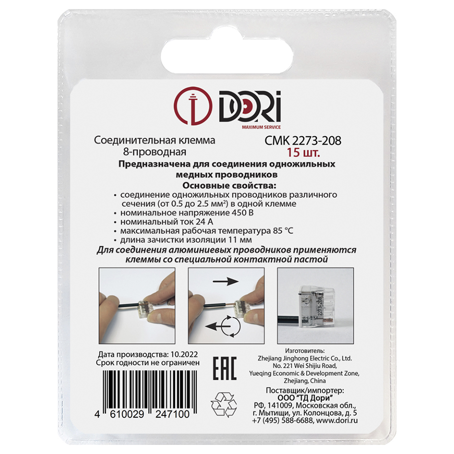 Строительно-монтажная клемма Dori (СМК2273-208) 8-проводная, 15 шт.