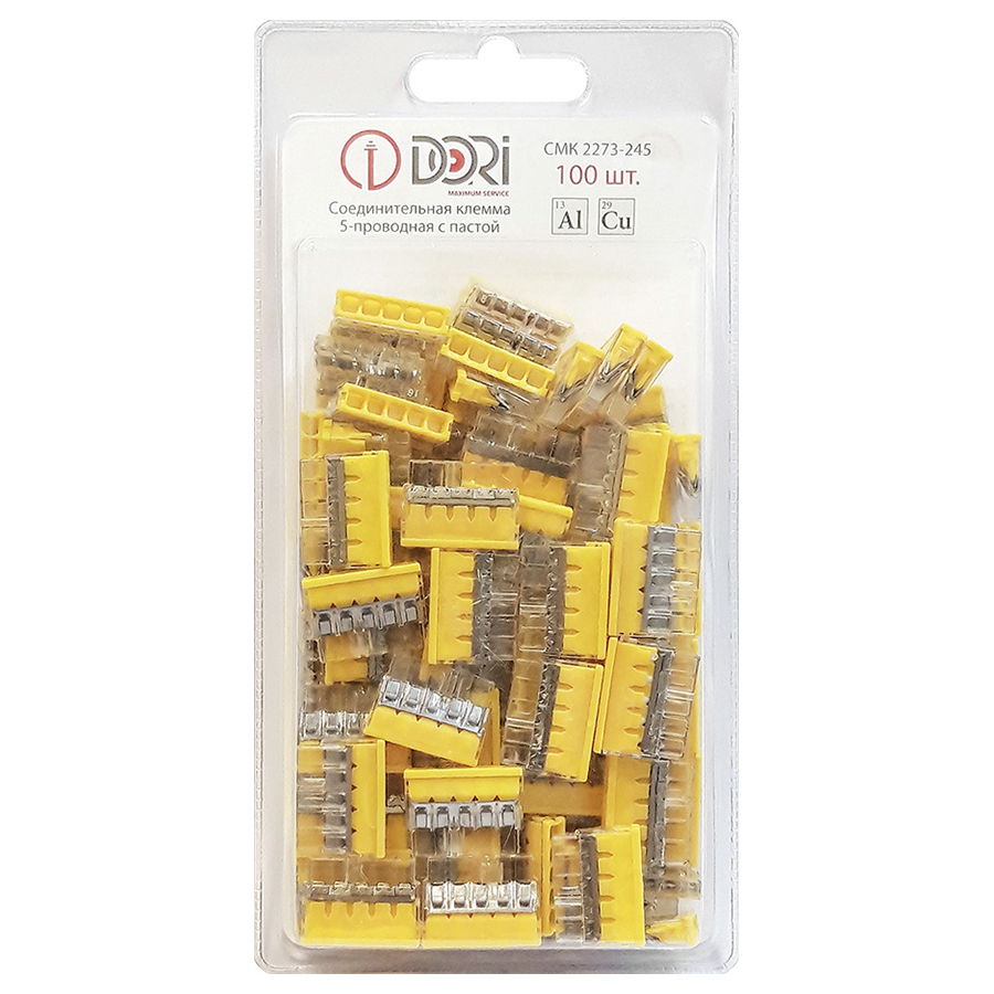 Строительно-монтажная клемма Dori (СМК2273-245) 5-проводная с пастой, 100 шт.